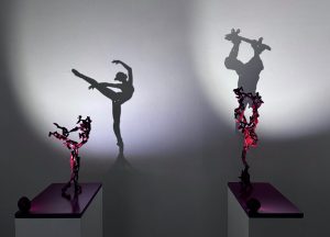 엄익훈 작가는 형태가 불분명한 작은 스틸 판을 반복적으로 연결시켜 추상적인 조각을 만들어내고, 이에 빛을 비춰 그림자를 통해 또 다른 구상화된 이미지를 보여준다. ‘그림자 조각’이라 불리는 이 작품은 실재와 부재의 사이 경계 지점에 관한 개개인의 인식과 시각적 차이에 대한 사유가 담겨 있으며, 치밀한 계산을 통해 쌓아 올린 작업 방식은 빛을 통해서만 볼 수 있는 그림자 환영으로 비로소 제 모습을 드러낸다. 그 결과 나타나는 예상치 못한 이미지는 보는 이로 하여금 감탄을 자아내고, 현실과 환상의 교차로에서 서 있는 신비한 경험을 제공한다.