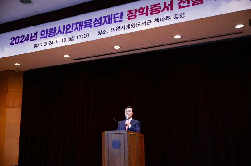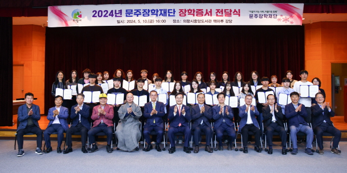 지난 10일 의왕시중앙도서관 책마루에서 열린 ‘2024년 의왕시인재육성재단․문주장학재단 장학증서 전달식’에는 의왕시인재육성재단 김성제 이사장과 문주장학재단 문주현 이사장을 비롯해 장학생 및 학부모 150여 명이 참석했다.