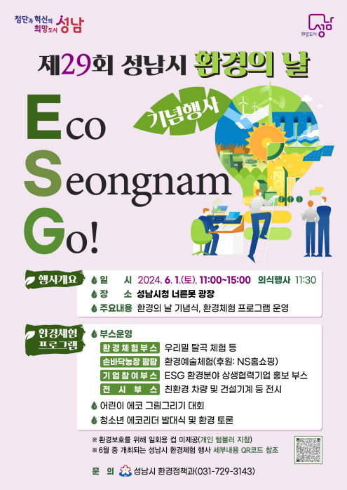 시 관계자는 “성남시는 ESG 선도 도시로서 환경보전을 위한 다양한 체험활동을 제공해 지속 가능한 그린도시 성남 만들기에 주력하겠다”고 말했다.
