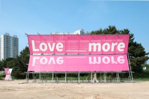 Hello, world!는 프로그래밍 언어의 첫 번째 출력 문장으로, 새로운 세상의 문을 여는 인사말과 같다. “Hello, world!”로 시작해, 다양한 사람들이 세상을 향한 메시지로 다음 문장을 채워 넣으며 만들어가는 전시다. 웹을 통해 세상에 전하고 싶은 대중들의 목소리를 수집하고, 이를 예술가들과 야외 전시장에 펼치며 세상과 소통하는 시간을 갖는다. 전시에 참여하는 그라운드아키텍츠, 에스오에이피, 프랙티스는 공공에게 텍스트를 경험할 수 있게 시대를 파빌리온 구조로 제안한다. 첫 번째로 게시되는 텍스트는 파빌리온의 설계자인 건축가 및 디자이너의 목소리다. 그라운드아키텍츠의 김한중 건축가는 가설재의 조립과 해체라는 순환구조를 도시의 집단과 개인의 메시지로 치환해 두 개의 파빌리온을 제안한다. 상반된 구조와 소통 방식을 병치하며 도시의 단면을 압축적으로 드러낸다. 에스오에이피의 권순엽 건축가는 가설재를 X자로 교차한 긴 터널의 파빌리온으로, 게시대 역할을 충실히 수행하며 관객들에게 공간 경험을 제공한다. 건축가는 공간과 텍스트로 삶에 대한 시선과 태도를 관객과 공유해 나간다. 프랙티스의 이시산 안서후 디자이너는 개발 중인 도심 속에 자연을 간직하고 있는 전시장의 장소성에 주목했다. 햇살, 바람 등 공간의 감각 경험을 확장하는 파빌리온과 자연의 명상적 텍스트를 연결시키며, 도심 속에서 자연의 숭고함을 발견할 수 있는 기회를 제공한다.