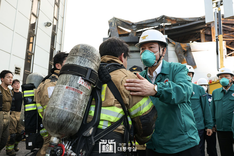 윤석열 대통령은 24(월) 경기도 화성시 배터리 제조공장에서 발생한 화재 현장을 방문했다. 윤 대통령은 30명의 사상자 특히 22명의 사망자가 발생한 것에 대해 위로와 함께 화재원인 정밀 점검을 당부했다.