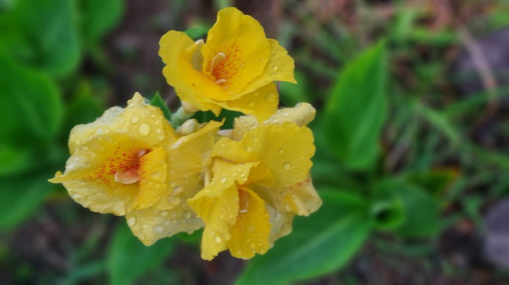 모처럼 비 오는 날 우중 산책하러 칠보산 근처를 나가봤다. 오전에 그렇게 화창하던 날씨가 순식간에 변해 오후 내내 비가 내렸다. 우산을 들고 나갈 때만 해도 한 두 방울 떨어지던 비가 숲에 들어서자 나뭇잎 사이로 세차게 비가 내렸다. 그 소리가 얼마나 크게 들리던지 순간 발걸음을 멈추어 섰다. 오늘 일기예보는 틀리지 않은 것 같다. 숲을 나오니 다시 비는 잠잠해져 있었다. 한참을 걸어 내려오다 보니 길옆에 빗방울을 머금은 노란 꽃이 발걸음을 멈추게 했다.