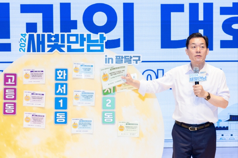 2024새빛만남은 이재준 시장이 권선·영통·장안·팔달구 권역을 찾아가 시민들에게 시정 주요 계획과 각 권역의 주요 사업을 설명하고, 시민과 대화를 나누는 자리다. 팔달구 권역 새빛만남은 4~6일 세 차례에 걸쳐 정조테마공연장에서 열린다. 이재준 시장은 4일 고등동·화서1·2동, 5일 행궁·매교·매산·지동, 6일 우만 1·2·인계동 주민들을 만난다.