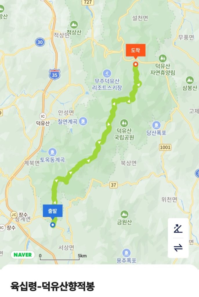 ✱등산코스 : 육십령휴게소-11-03지점 좌측-할미봉(1026m)-삼자봉-육십령(11-10지점)-서봉(1492m)-남덕유산(1507m)-월성재-삿갓봉-삿갓재대피소-무룡산(1491m)-칠이남쪽대기봉or가림봉(1420m)-동엽령(1260m)-백암봉(1503m)-덕유평전-중봉(1594m)-향적봉대피소-향적봉(1614m)-백련사-인월담-구천동-삼공매표소