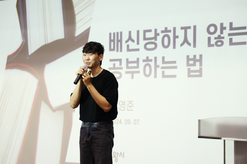 이날 특강은 사교육 없이 스스로의 노력으로 2020년 전교 꼴찌에서 수능 만점자가 된 송영준 군이 ‘공부는 절대 나를 배신하지 않는다’라는 주제로 진행했다.