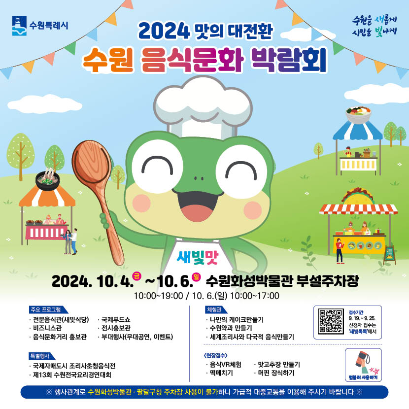 ‘2024수원음식문화박람회’가 10월 4~6일 수원화성박물관 부설주차장에서 열린다.