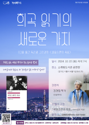 이번 강연은 시민 누구나 무료로 참여할 수 있으며, 현재 강연 참여자(50명)를 모집 중이다. 신청은 시흥시 도서관 누리집(https://m.site.naver.com/1uYrp) 및 홍보물의 큐아르(QR) 코드를 통해 할 수 있다.