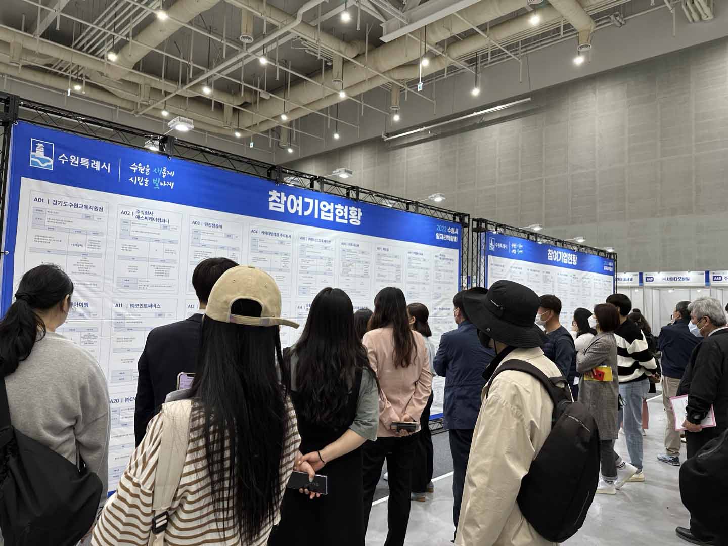 이날 수원일자리센터, 팔달·영통여성새일센터, 신중년 인생이모작 지원센터 등 취업 관련 기관은 구직자들에게 구인 정보와 취업 상담 등 맞춤형 컨설팅을 제공했다. 또 취업 관련 프로그램과 계층별 지원정책 등을 홍보했다.