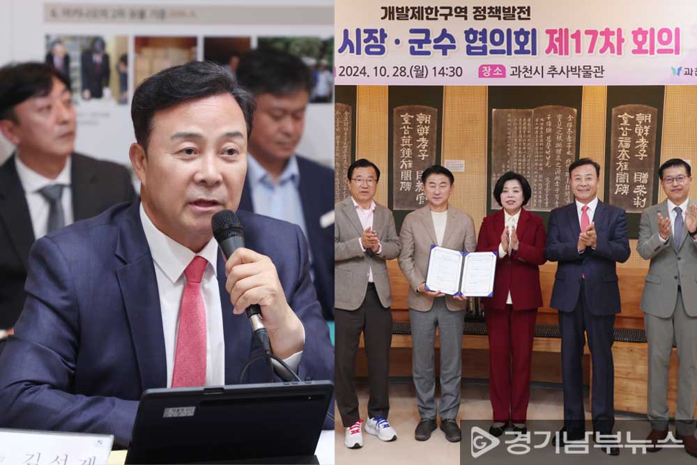 김성제 의왕시장은 제17차 경기도 개발제한구역 정책발전 시장·군수 협의회에 참석, 개발제한구역 내 파크골프장 설치 제도 개선 안건을 건의하는 등 다양한 현안사항을 논의했다. 협의회는 28일 과천시 추사박물관에서 개최됐다.