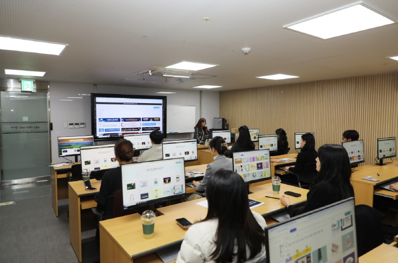 이날 교육은 ▲생성형AI의 최근 동향▲AI프레젠테이션 만들기▲포스터와 현수막 만들기▲AR기능으로 인쇄 미리보기 등 다양한 프로그램 활용법을 소개하고 실습하는 형식으로 진행되었다. 이를 통해 직원들은 최신 디지털 도구를 실무에 효과적으로 적용하는 방법을 배울 수 있었다.