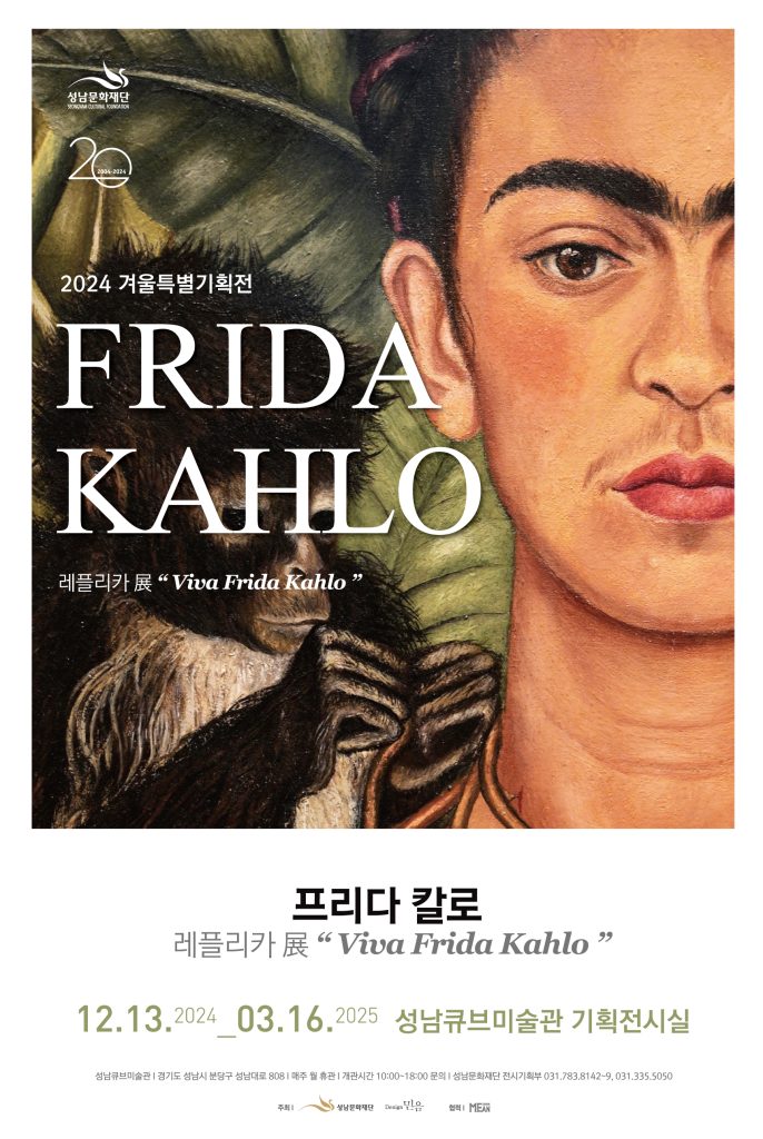성남문화재단이 20세기를 대표하는 여성화가 프리다 칼로의 삶과 예술을 다룬 특별기획전 <비바! 프리다 칼로> 레플리카 전시를 12월 13일(금)부터 2025년 3월 16일(일)까지 성남큐브미술관 기획전시실에서 개최한다.