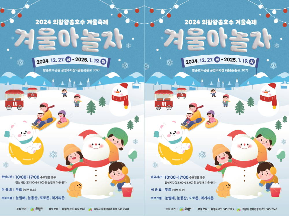 김성제 의왕시장은 “올해 겨울 축제는 눈썰매와 더불어 의왕시 대표 관광 시설과 함께 즐길 수 있는 이벤트를 준비했으니 가족들과 함께 방문해 겨울의 즐거움을 만끽하고 소중한 추억을 남기시길 바란다”고 말했다.
