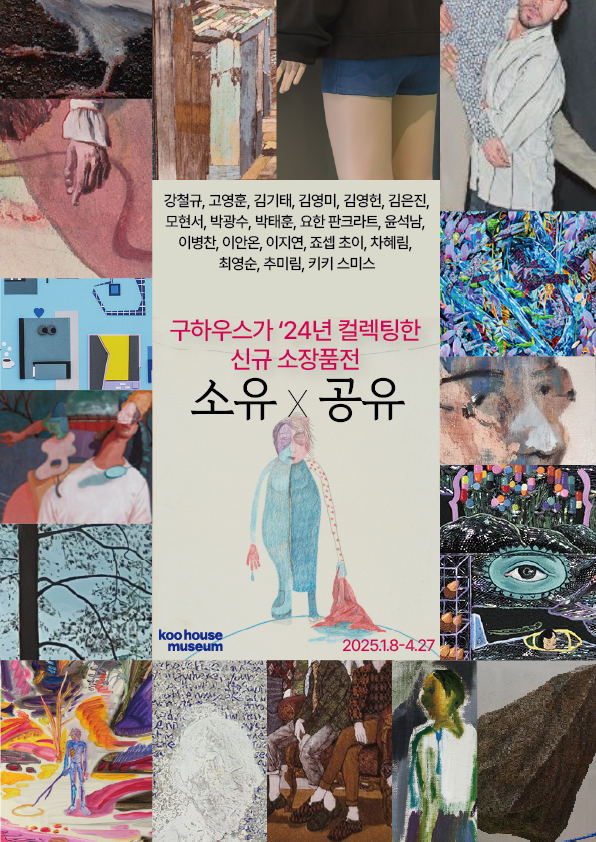 2025년 첫 전시인 ‘25번째 기획전 - 소유 X 공유’展은 예술의 가치가 개인 소유를 넘어 공유의 영역으로 확장될 수 있음을 강조한다. 이번 전시를 통해 구하우스 미술관은 지난 한 해 동안 주목했던 작가들의 작품을 공개하며, 예술이 개인적인 감상의 차원을 넘어 대중과 소통하고 공유하는 장으로 나아갈 수 있음을 보여주고자 한다. 이를 통해 새해를 맞이하는 관람객들에게 더 넓은 시야와 열린 마음을 선사할 예정이다.