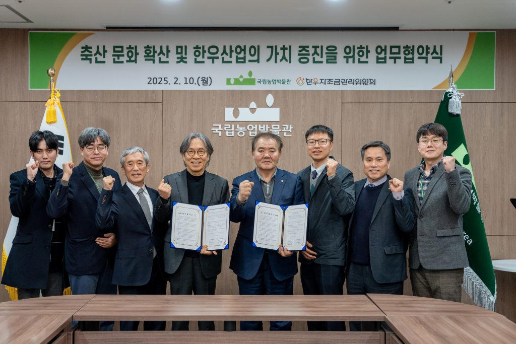 국립농업박물관(관장 황수철)과 한우자조금관리위원회(위원장 이동활)는 10일, 한우산업의 발전과 축산 문화의 확산을 위한 업무협약(MOU)을 체결했다고 밝혔다. 이번 협약은 한우의 역사적, 문화적 가치를 보존하고, 축산 관련 기록을 체계적으로 수집해 후대에 전하는 중요한 계기가 될 것으로 기대된다. 두 기관은 협약을 통해 축산 산업의 지속 가능성을 높이고, 국민들에게 한우의 소중한 가치를 알리기 위한 다양한 프로젝트를 공동으로 추진할 계획이다.