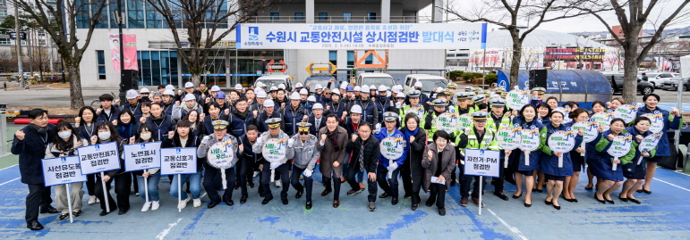 5일 수원종합운동장에서 열린 ‘수원시 교통안전시설 상시점검반 발대식’에는 이재준 수원시장, 수원시·4개 구청 교통 부서 관계자, 수원시 경찰서 관계자, 유지관리업체 관계자, 교통 관련 단체·기관 관계자, 시의원 등이 참석했다.