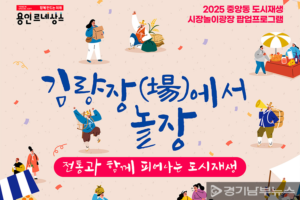 ‘김량장(場)에서 놀장’이 오는 17일 처인구 중앙동에 있는 ‘용인중앙시장’에서 개최된다. 이 행사는 도시재생의 가치와 성과를 공유하기 위한 ‘전통’을 주제로 열리는 중앙동 도시재생사업의 일환인 팝업 프로그램이다.