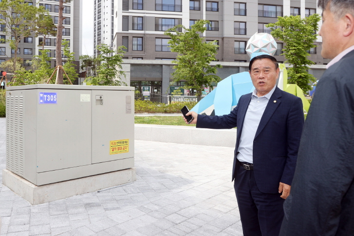 현장에서는 아파트 진입 도로변의 신호체계 문제와 광장 내 배전판 설치로 인해 아동 안전사고가 우려된다는 민원이 제기되었으며, 이에 대한 해결 방안을 두고 심도 있는 논의가 진행되었다.