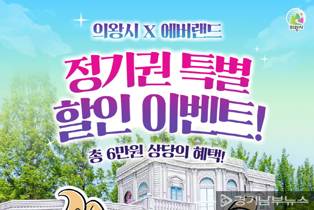 의왕시는 2025년 6월 1일부터 30일까지 에버랜드와 협력해 의왕시민을 대상으로 정기권 특별 할인 프로모션을 진행한다. 이번 혜택은 의왕시 공식 카카오톡 채널을 친구 추가한 시민이면 누구나 받을 수 있으며, 에버랜드 정기권(정상가 29만 원) 구매 시 총 6만 원 상당의 할인을 제공한다.