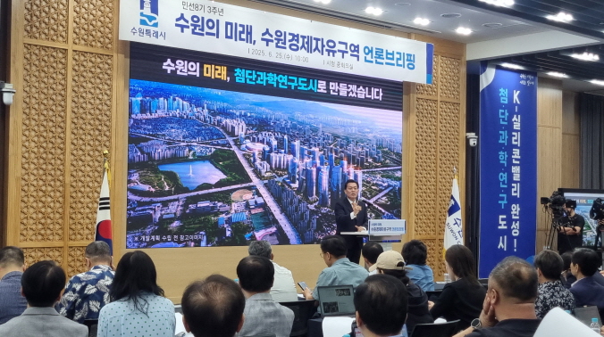 이재준 수원시장이 25일 브리핑을 통해 “수원 경제자유구역 지정을 반드시 이뤄내, 수원을 ‘한국형 실리콘밸리’로 만들겠다”고 선언했다. 수원시는 지난 4월 경기경제자유구역 추가 후보지로 선정되며 지정 첫 관문을 통과했고, 내년 6월 산업통상자원부에 공식 신청 예정이다. 지정이 확정되면 2026년 11월 경제자유구역으로 공식 출범하게 된다.