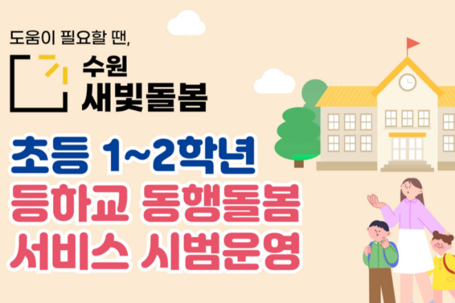 수원시 (시장 이재준)가 초등학교 1~2학년 자녀를 둔 가정을 위해 등하교 동행돌봄 서비스를 7월부터 10개 동에서 시범 운영한다.