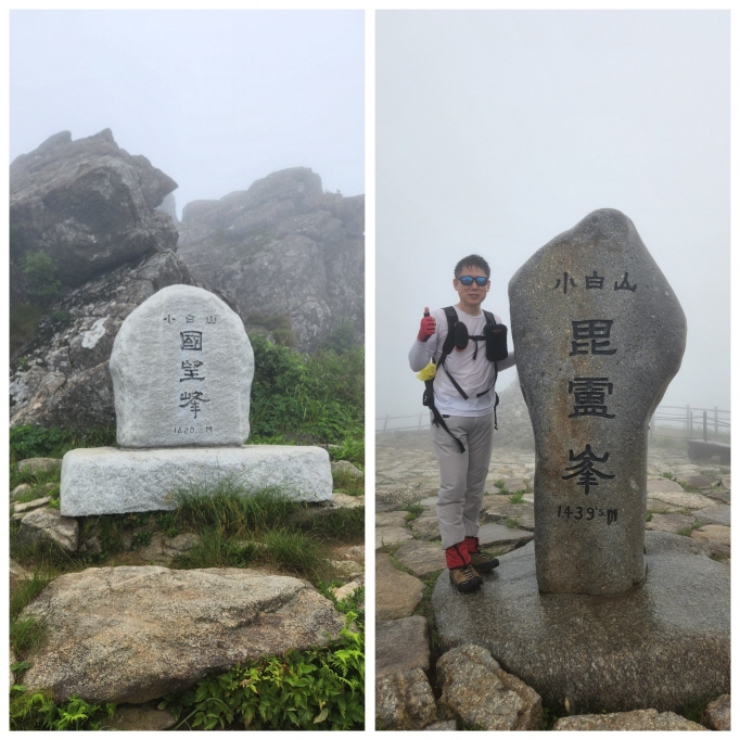 어의곡삼거리 못 미친 지점에 오니 등산로가 테크로 비로봉 정상까지 이어져 있었다. 이곳부터는 하늘을 볼 수 있는데 짙은 안개와 거친 바람에 어느덧 옷은 젖어 들고 머리에서는 물방울이 떨어진다. 비로봉까지 거친 바람을 맞는데 몸이 조금씩 추위를 느껴 빠른 걸음으로 속도를 올리며 걷는다. 비로봉 정상에 도착해 보니 어떤 모녀가 벌써 와 있다. 새벽 3시에 출발해 좀 전에 도착했다고 한다. 딸은 추워 덜덜 떨고 있고 반대로 엄마는 시원해서 좋다고 했다. 결국엔 딸이 방풍 재킷이 없다며 서둘러 원점회귀를 한다. 내려가는 분들이 걱정돼 모녀에게 포도당 사탕을 두 알씩 챙겨줬다. 또, 숲속으로 들어가면 덜 추우니 안전하게 하산을 하라고 안내를 한 후, 어의곡삼거리에서 우측으로 꺾어 국망봉으로 향했다.