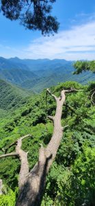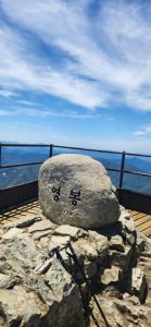 같이 계단을 밟으며 올라 정상에 도착한다. 영봉에서 벨기에 여성과 기념사진도 찍고 서로 가는 방향이 틀려 헤어지고 나는 원점회귀를 했다. 왔던 코스를 내려가는데 이 급한 경사 구간들을 어떻게 올라왔는지 스스로에게 ‘대견하다.’ ‘대단하다.’ ‘넌 뭐든지 할 수 있는 사람이다.’라며 자가 칭찬을 한다.