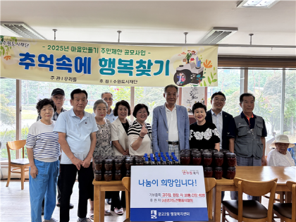 이날 전달된 후원품은 고추장(1kg) 30통, 된장(500g) 30통, 간장(500ml) 40통으로, 모두 전통적인 방식으로 정성껏 만든 품목이다. 전달식에는 (사)경기도전통음식협회 김준옥 수원시지부회장을 비롯해 유준숙 의원(국민의힘, 행궁·지·우만1·2·인계), 홍종철 의원(국민의힘, 광교1·2), 광교 2동장, 복지행정팀장 등이참석해 나눔의 뜻을 함께했다.