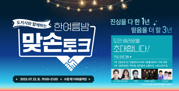 ○ 도, 7월 22일(토) 수원제1야외음악당에서 도민 초청 ‘한여름밤 맞손토크’ 개최