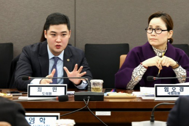 경기도의회 최민 의원(좌측) 경기도의회 최민 의원(더불어민주당, 광명2)이 2월 28일 GH(경기주택도시공사) 광교 신사옥을 방문해 정담회를 열고, 광명시 원도심 주거환경 개선 및 주택공급 확대 사업들을 속도감 있게 추진할 것을 강력히 촉구했다.