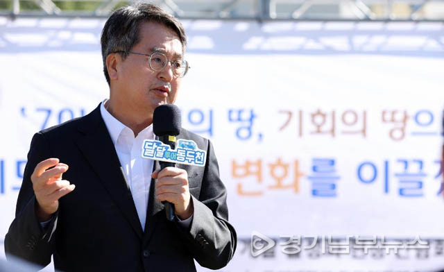 김동연 지사는 “게임을 하는데 불리한 상황이 계속 될 때 단번에 게임을 바꾸거나 역전시킬 수 있는 것을 ‘게임체인저’라 한다”며 “경기북부는 70년 이상 중복규제와 미국공여지역 등 여러 가지 불이익을 겪어 왔다. 지사 취임하고 이런 경기북부에 대한 게임체인저가 무엇일까 하는 생각을 늘 했다. 북부대개조사업은 그렇게 해서 이야기한 것”이라고 말했다.