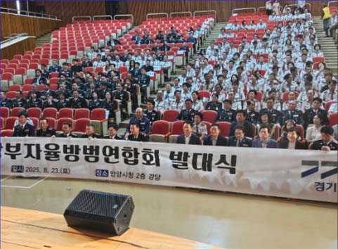 경기남부 자율방범대 연합회(회장 이상호)가 지난 8월 23일(토) 오후 3시, 안양시청 2층 강당에서 발대식을 열고 도민 안전과 지역사회의 범죄예방 활동을 위한 힘찬 출발을 알렸다.