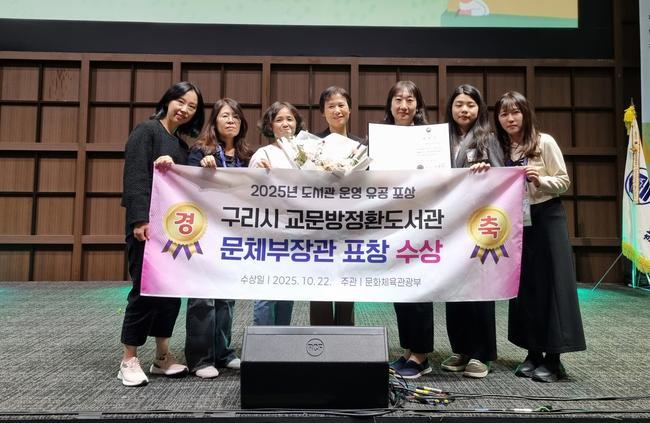 구리시(시장 백경현) 교문 방정환 도서관이 지난 10월 22일 수원컨벤션센터에서 열린 제62회 전국도서관 대회에서 `2025년 도서관 운영 유공 우수도서관`으로 선정돼 문화체육관광부 장관상을 받는 영예를 안았다.