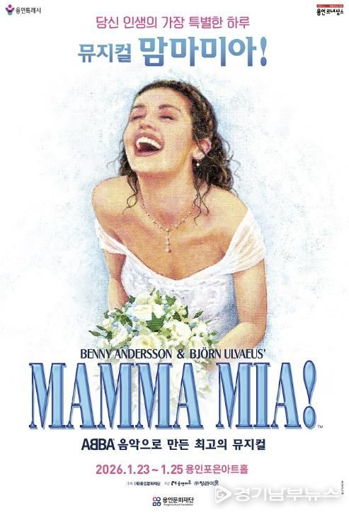 [경기남부뉴스 홍수정 기자] 용인문화재단은 오는 2026년 1월 23일부터 25일까지 뮤지컬 ‘맘마미아!’를 용인포은아트홀에서 개최한다고 밝혔다. 관람 연령은 초등학생 이상으로, 겨울방학 기간 가족·친구·연인 등 남녀노소 누구나 함께 즐길 수 있는 대표 뮤지컬을 3일간 총 4회에 걸쳐 선보인다.