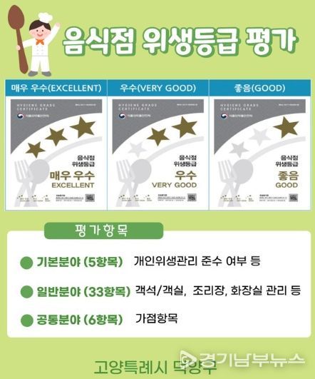 [경기남부뉴스 김혜숙 기자] 고양특례시 덕양구는 12월 1일부터 5일까지 위생등급제 지정 업소를 대상으로 ‘2025년 하반기 위생등급 지정 음식점 사후관리’를 진행한다.
