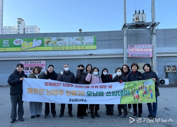 [경기남부뉴스 홍복순 기자] 남양주시는 지난 11월 28일 오남읍사무소(읍장 이석태)가 겨울철을 앞두고 도심 환경을 정비하고 쾌적한 생활환경을 조성하기 위해 환경정화활동 ‘쓰담데이’를 진행했다고 밝혔다.