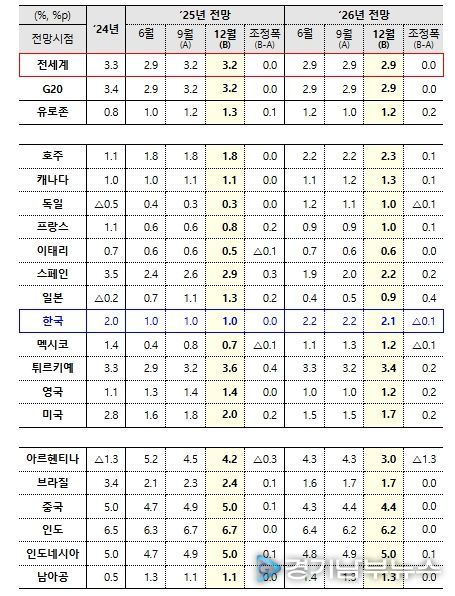 [경기남부뉴스 김혜숙 기자] 경제협력개발기구(Organization for Economic Cooperation and Development)는 12월 2일 11:00(프랑스 파리 기준, 한국시각 19:00, 국제엠바고) 경제전망을 발표했다.
