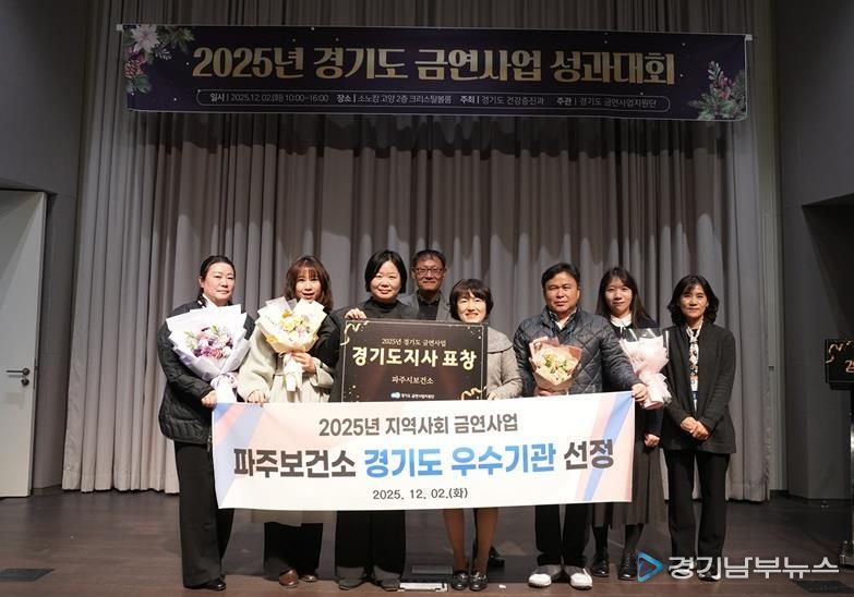 [경기남부뉴스 홍복순 기자] 파주시는 2025년 경기도 지역사회 금연사업 평가에서 금연환경 조성과 흡연율 감소에 기여한 공로를 인정받아 지난 2일 경기도지사 기관 표창(우수기관)을 수상했다고 밝혔다.