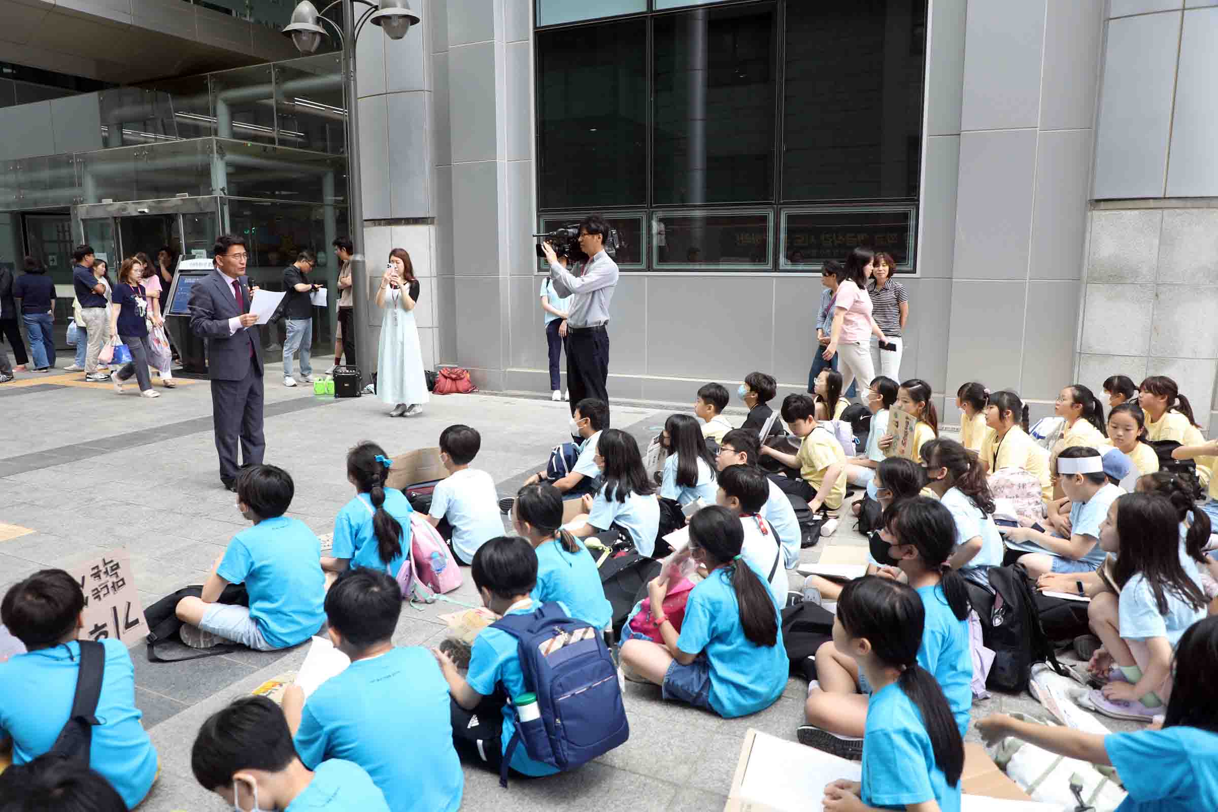 지난 5일 신영초(수원시 영통구) 어린이들은 수원시청사를 방문하여 기후위기 캠페인을 펼치며 전세계적으로 문제가 되고 있는 기후위기에 대해 수원시가 할 수 있는 대책을 마련해 달라는 내용의 ‘우리의 요구’를 낭독하고 수원특례시의회 의장에게 요구서를 전달했었다.