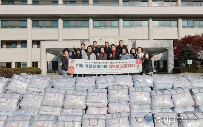 [경기남부뉴스 김혜숙 기자] 군포시와 군포시지역사회보장협의체는 사회복지공동모금회와 함께 ‘2025년 기후변화(혹한기) 취약가정 계절별 환경개선 지원사업’을 추진하여 본격적인 추위가 시작되기 전에 취약한 가구의 겨울나기를 돕기 위해 저소득 취약가구 250가구에게 겨울 이불세트를 전달 했다.