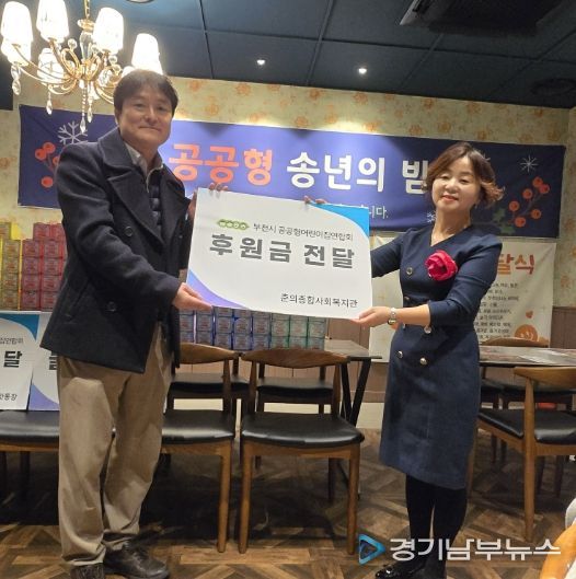 [경기남부뉴스 김혜숙 기자] 부천시 공공형어린이집연합회가 지난 24일 개최된 공공형어린이집 송년의 밤 행사에서 춘의종합사회복지관에 이웃사랑 후원금을 전달하며 2년 연속 나눔 활동을 이어갔다.