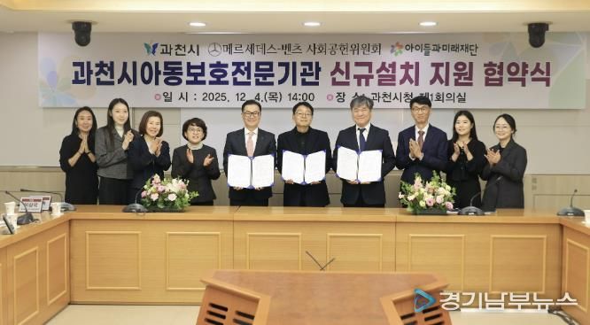 [경기남부뉴스 김혜숙 기자] 과천시는 지난 4일 시청 회의실에서 메르세데스-벤츠 사회공헌위원회 및 사회복지법인 아이들과미래재단과 ‘과천시아동보호전문기관 신규 설치’를 위한 협약식을 개최했다고 밝혔다.