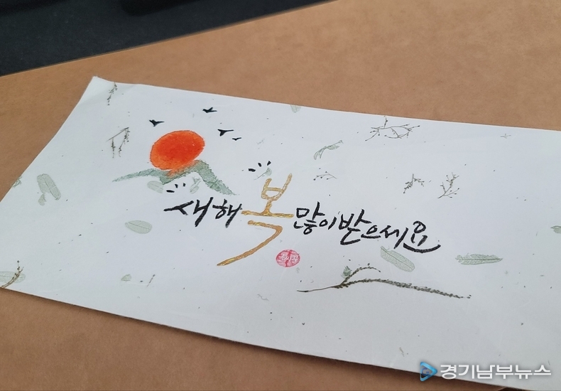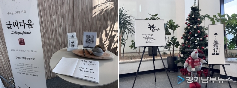 2025년 12월 6일(토) 오후 2시, 매여울도서관 2층 로비에서 진행되며 전시를 찾는 시민 100명에게 김상훈 작가와 삼성전기 캘리그라피 동호회가 직접 제작한 새해 소망 봉투를 나눠준다.