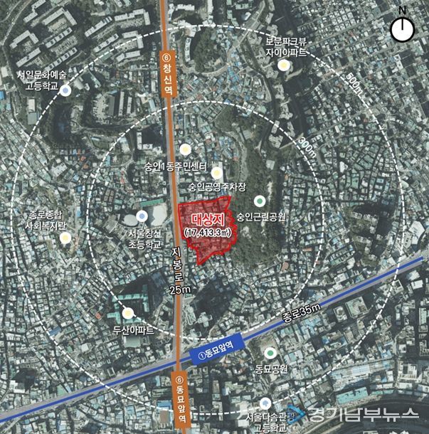 종로구 숭인동 61번지 일대(17,413.3㎡)는 모아타운 사업으로 기존 239세대에서 179세대 늘어난 총 418세대(임대 88세대 포함)를 공급할 예정이다. 대상지는 노후건축물 비율이 93.4%, 폭 4~6m 이하의 협소한 내부도로 등 열악한 여건으로 주거환경 개선이 필요했던 곳이다.