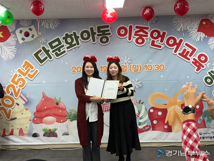 [경기남부뉴스 김혜숙 기자] 수원시다문화가족지원센터가 운영한 2025년 다문화아동 이중언어교육 프로그램이 7일 종강식을 갖고 1년 과정을 성공리에 마쳤다.