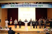 [경기남부뉴스 김정옥 기자] 수원특례시의회는 2월 27일 호매실장애인종합복지관에서 열린 '수원시장애인복지단체연합회 제7대 회장 취임식'에 참석해 새로운 출발을 축하했다. 이날 행사에는 보건복지위원회 이희승 위원장(더불어민주당, 영통2·3·망포1·2), 인사청문특별위원회 윤경선 위원장(진보당, 평·금곡·호매실), 박현수 국민의힘 교섭단체대표(국민의힘, 평·금곡·호매실)를 비롯해 유재광 의원(국민의힘, 율천·서둔·구운·입북), 정영모 의원(국민의힘, 영화·조원1·연무), 사정희 의원(더불어민주당, 매탄1·2·3·4), 김경례 의원(더불어민주당, 비례대표), 홍종철 의원(국민의힘, 광교1·2), 이대선 의원(더불어민주당, 율천·서둔·구운·입북)도 함께했으며, 장애인단체 관계자와 내·외빈 200여 명이 참석한 가운데 내빈 축사와 축하공연, 기념촬영 등이 진행됐다 제7대 회장으로 취임한 이종갑 회장은 앞으로 3년간 연합회를 이끌며 장애인단체 간 협력과 권익 증진 활동을 추진할 예정이다. 수원시장애인복지단체연합회는 지역 내 장애인 단체들이 참여하는 협의체로, 복지 정책 건의와 현장 의견 전달 창구 역할을 맡고 있다. 이