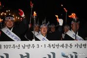 [경기남부뉴스 김혜숙 기자] 남양주시는 27일 화도읍 월산교회에서 남양주문화원 주최로 열린 3.1독립만세운동 기념행사가 성황리에 마무리했다고 밝혔다. 이번 행사는 남양주 지역에서 전개된 독립만세운동의 역사적 의미를 되새기고, 지역 독립운동 정신을 계승하기 위해 마련됐다. 행사에는 주광덕 남양주시장을 비롯해 조성대 남양주시의장, 남양주문화원장, 경기북부보훈지청장, 광복회 남양주시지회장, 도·시의원, 독립유공자 후손과 시민 등 300여 명이 참석해 독립 정신을 되새겼다. 행사는 총 3부로 운영됐으며, 1부에서는 기념식과 기념예배가 진행됐다. 시립합창단의 식전공연을 시작으로 기념예배, 주광덕 시장의 경축사와 독립선언서 낭독 등이 이어졌다. 2부에서는 월산교회에서 마석역 광장까지 ‘횃불 대행진’을 진행했다. 풍물패와 군부대의 인도 아래 시민들이 직접 횃불을 들고 행진하며 1919년 당시의 긴박했던 만세 운동 현장을 재현했다. 마지막으로 3부에서는 모든 참석자들이 마석역 광장에서 삼일절 노래 제창과 만세삼창을 외치며 행사의 대미를 장식했다. 주광덕 시장은 “3.1운동의 정신은 과거에 머물지 않