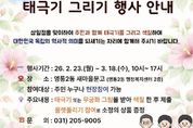 [경기남부뉴스 김정옥 기자] 영통구 영통2동은 영통2동 새마을문고가 제107주년 3·1절을 맞아 지역 주민과 함께 독립운동의 뜻을 기리고 나라사랑의 의미를 되새기기 위한 ‘태극기 그리기’ 행사를 운영한다고 밝혔다. 이번 행사는 오는 3월 18일까지 매일 오전 10시부터 오후 5시까지 영통2동 새마을문고에서 진행되며, 전 연령대 누구나 현장 접수를 통해 참여할 수 있다. 참가자들은 직접 태극기와 무궁화를 그리며 3·1운동 정신을 생활 속에서 체험하는 시간을 갖는다. 제출 시 룰렛 돌리기를 통해 소정의 상품도 증정할 예정이다. 영통2동 새마을문고는 앞으로도 독서문화 활동과 연계한 다양한 생활문화 프로그램을 통해 주민 참여의 장을 넓히고, 지역의 역사·문화 가치를 함께 나누는 활동을 이어갈 계획이다.