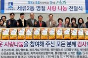 [경기남부뉴스 김정옥 기자] 지난 11일, 수원시 권선구 세류2동은 설 명절을 맞이하여 사랑 나눔 전달식을 개최했다. 이날 마련된 후원 물품은 취약계층 약 379 가구에 직접 전달될 예정으로 지역사회에 사랑이 전해지는 명절이 될 것으로 기대된다. 이번 전달식에는 세류2동 주민자치회, 통장협의회, 새마을부녀회, 새마을문고, 바르게살기위원회, 자유총연맹, 체육진흥회, 방위협의회, 지역사회보장협의체 등 9개 단체의 단체장과 ㈜대일실업, ㈜광신이 참여했다. 이와 함께 MG세화새마을금고, ㈜에코월드, 영광광고기획 등 지역 내 여러 기관과 개인 후원자의 사랑 나눔도 더해져 행사에 의미를 더했다. 변영호 세류2동장은 “어려운 시기에 지역사회 관심으로 사랑 나눔에 참여해 주신 단체(기관)에 감사드리며, 앞으로도 유관 기관과 적극 협력으로 행복과 웃음이 피어나는 정겨운 세류2동을 만들기 위해 최선을 다하겠다”라고 말했다.