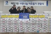 [경기남부뉴스 김정옥 기자] 수원시 영통구 매탄3동은 지난 4일, 매탄중심상가상인회로부터 설 명절을 맞이해 관내 취약계층을 위한 라면 100박스와 햇반 110박스를 기탁받았다고 밝혔다. 이번 기탁은 설 명절을 앞두고 지역사회에 따뜻한 활력을 불어넣고, 이웃과 함께 정을 나누고자 하는 상인회 회원들의 자발적인 참여로 마련됐다. 기탁된 물품은 매탄3동 행정복지센터를 통해 기초생활수급 가구, 차상위 가구 등 저소득층 이웃들에게 전달되어, 모두가 풍성하고 든든한 명절을 보낼 수 있도록 지원될 예정이다. 정희경 매탄중심상가상인회장은 “설 명절만큼은 우리 주변의 어려운 이웃들이 소외되지 않고 따뜻한 정을 느끼며 든든하게 보내시길 바라는 마음으로 회원들과 정성을 모았다”며, “앞으로도 지역 상인들이 힘을 합쳐 주변을 살피고 나눔을 실천하는 활동에 적극 앞장서겠다”고 전했다. 김병목 매탄3동장은 “매년 명절마다 지역사회를 위한 나눔을 실천해 주시는 매탄중심상가상인회에 진심으로 감사드린다”며 “기탁해 주신 물품은 상인분들의 따뜻한 마음과 함께 관내 어려운 이웃들에게 소중히 전달하겠다”고 감사의 뜻을 전했다. 한