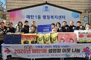 [경기남부뉴스 김정옥 기자] 수원특례시 영통구 매탄1동은 지난 3일 설 명절을 맞이해 관내 저소득층 300여 세대에 후원물품을 전달하는 이웃돕기 나눔 전달식을 개최했다. 이번 설 명절 이웃돕기 후원은 매탄1동 9개 단체(주민자치회, 통장협의회, 방위협의회, 바르게살기위원회, 새마을지도자협의회, 매탄136자율방범대, 지역사회보장협의체, 매1사랑장학후원회, 구매탄시장상인회)에서 성금 197만원, ‘매탄을새롭게’ 단체에서 성금 50만원을 기부했다. 아울러 구매탄시장상인회는 구매탄시장상품권 60만원을 추가 기부하여 해당 상품권은 고령의 기초수급자 어르신에게 배부될 예정이다. 이날 전달식에 참석한 매탄1동 9개 단체에서는 전달식 종료 후 직접 대상자 가정으로 찾아가 후원물품을 전달하고 어르신들의 건강과 안부를 확인했다. 좌성태 매탄1동 주민자치회장은 “지역 내 소외된 가구들을 위해 앞으로도 지역사회와 함께하는 이웃나눔 활동을 이어가겠다”고 전했다. 김은정 매탄1동장은 “어려운 시기에도 꾸준히 후원해 주시는 단체와 후원자분들께 감사드리며, 관내 취약가구 대상자 모두가 따뜻한 명절을 보낼 수 있도록 노력하겠다
